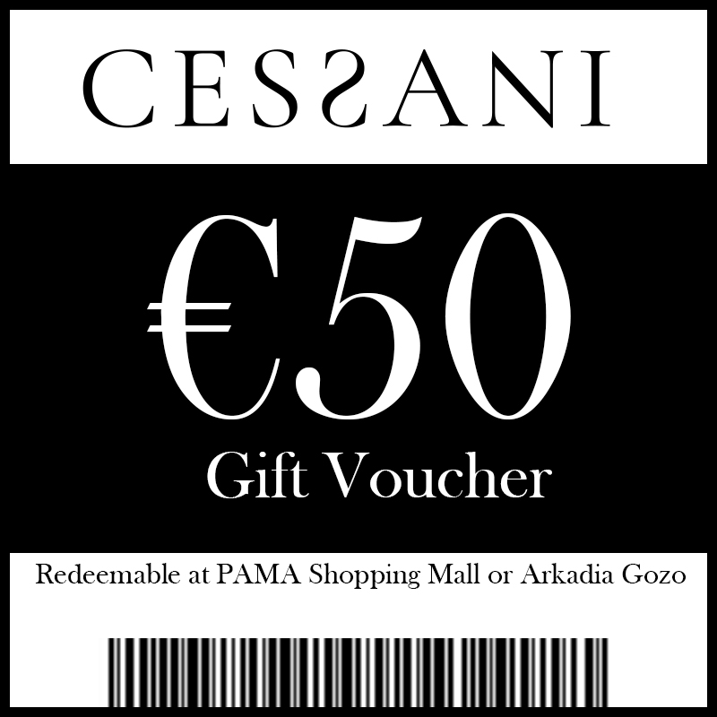 Give the gift of luxury with the CESSANI €50 Gift Voucher — a perfect way to share elegance, quality, and timeless style. Whether it’s a thoughtful present for a loved one or a special treat for yourself, this voucher opens the door to a refined CESSANI shopping experience.