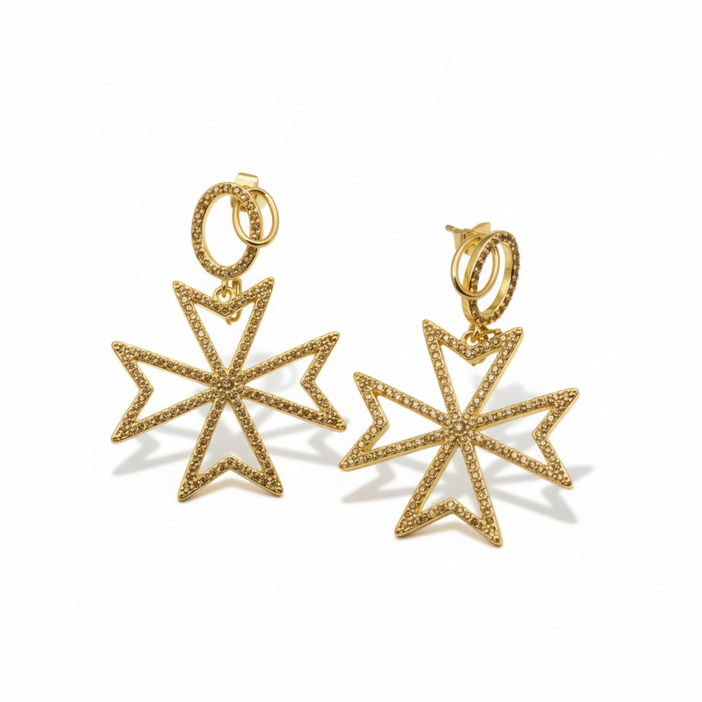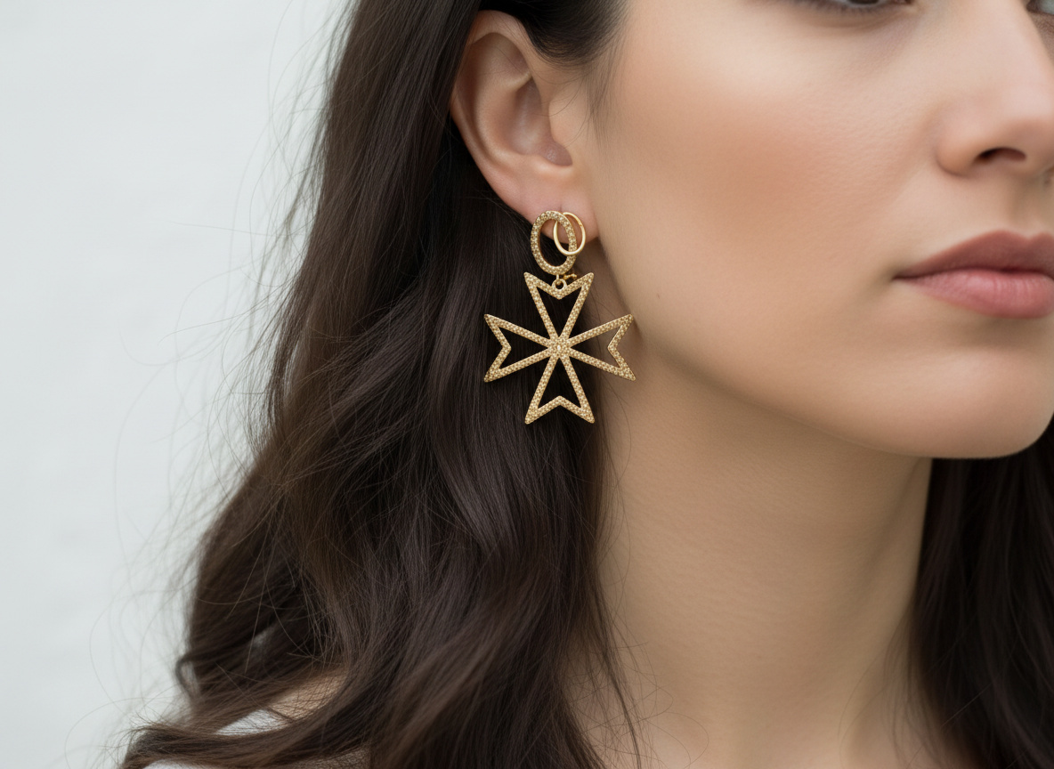 Inspired by the historic Maltese cross—a symbol of strength, honor, and resilience—this design merges cultural heritage with contemporary style. Whether worn for a special event or to elevate your everyday look, these earrings are a striking expression of identity and sophistication.